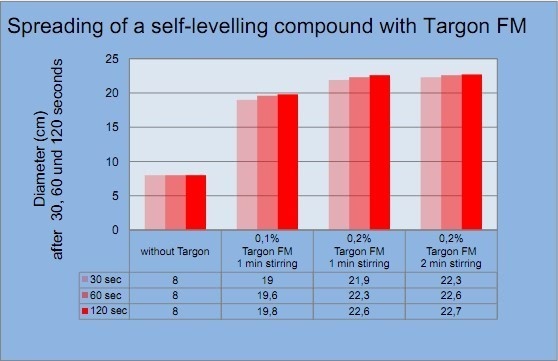 該圖表明使用 Targon FM 作為緩凝劑,可以按添加量的比例延長施工時(shí)間,但并不影響流平材料的固化。